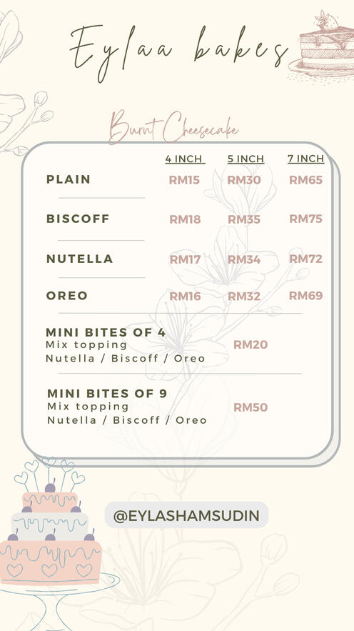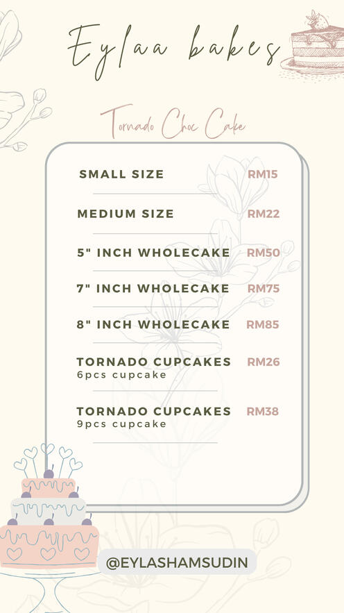 My name is Eyla & I am the owner Eylaa Bakes .Home based baker located in Balakong ,Selangor .Accept deliveries around KL and Selangor area by Lalamove.